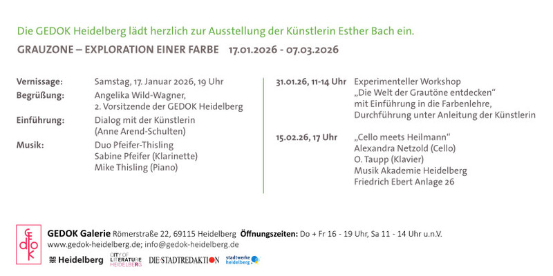 Herzliche Einladung zu meiner Einzelausstellung: "Grauzone - Exploration einer Farbe"; Vernissage am 17. Januar 2026