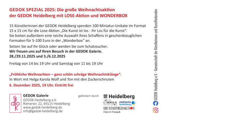 GEDOK Spezial 2025: Die große Weihnachtsaktion der GEDOK Heidelberg mit LOSE-Aktion und WONDERBOX