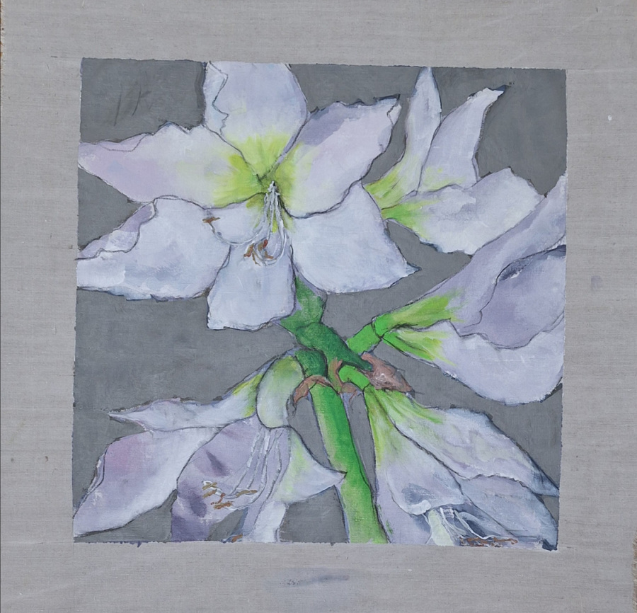 In ihren seriellen Arbeiten zu einer weißblütigen Amaryllis legt sie einen besonderen Fokus auf die Interpretation der natürlichen Verwandlungsprozesse dieser Pflanze - von der Knospe über die Blüte